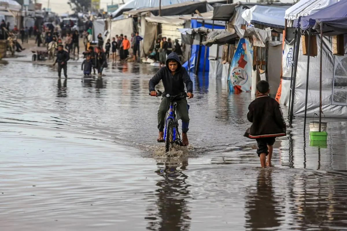 بارش باران، آبگرفتگی معابر و سرما در غزه، به رنج مردم آواره فلسطین افزوده است.