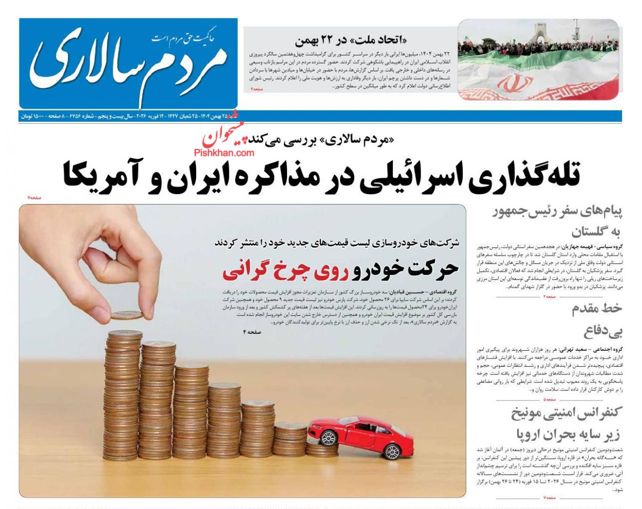 صفحه نخست روزنامه‌های ۲۵ بهمن‌ماه ۱۴۰۴ - هوژان | هوژان
